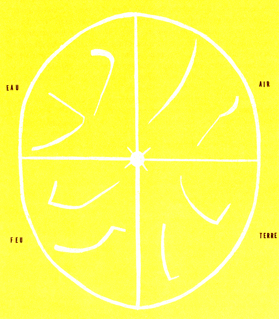 drehend, wie folgt: Erde, Feuer, Wasser, Luft. Die zwei Zeichen befestigt