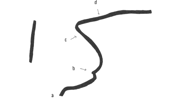 Teil, die Luft, ist im Zentrum dargestellt als eine Art S (von b bis c);