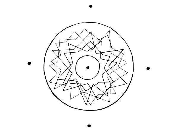 Punkt. Dann, während des Tages malt er eine Zigzacklinie um den Innenkreis